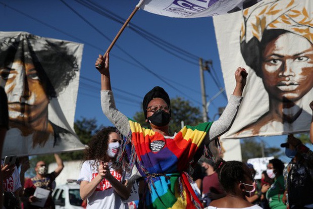 Người biểu tình tại Sao Paulo, Brazil vẫn tuân thủ quy định đeo khẩu trang và giãn cách xã hội khi xuống đường - Ảnh: Reuters